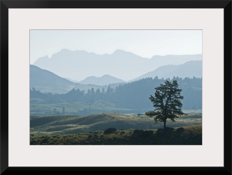 <p>Haze over the silhouetted Absaroka Range and Lamar Valley, Yellowstone National Park, United States of America</p>