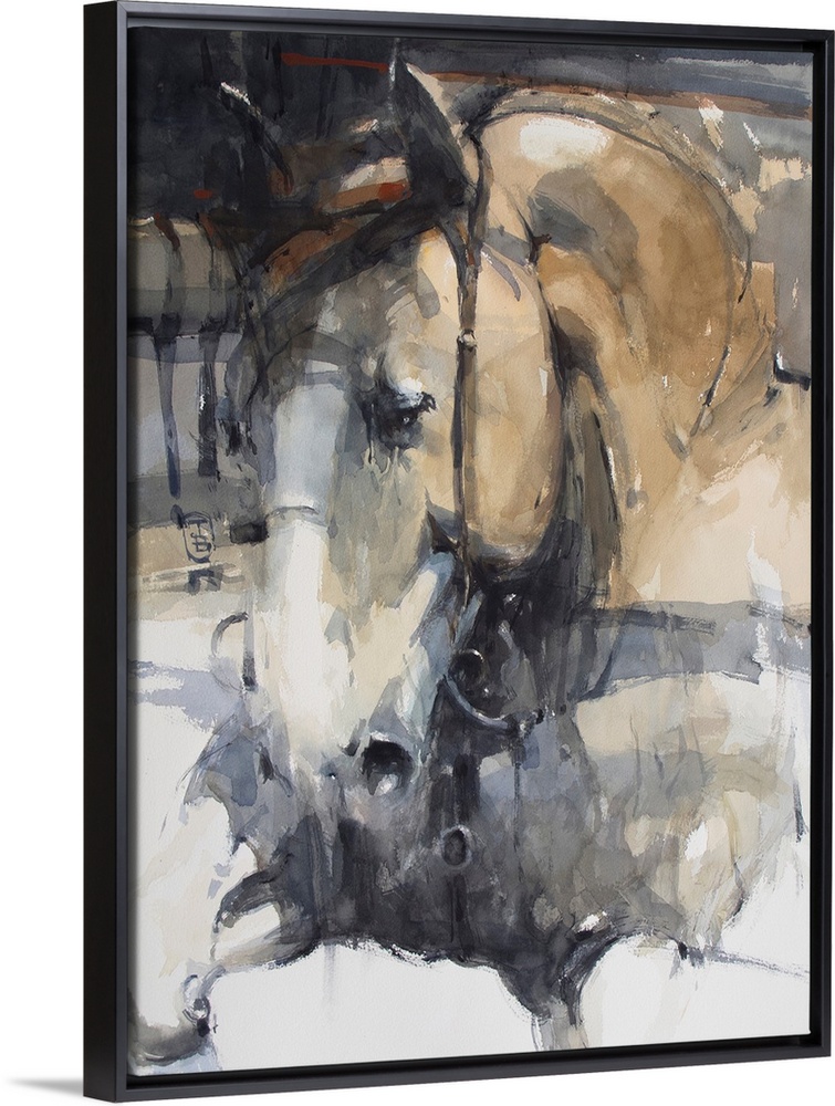 <p>This contemporary artwork features soft brush strokes to illustrate a close up of a horse.</p>