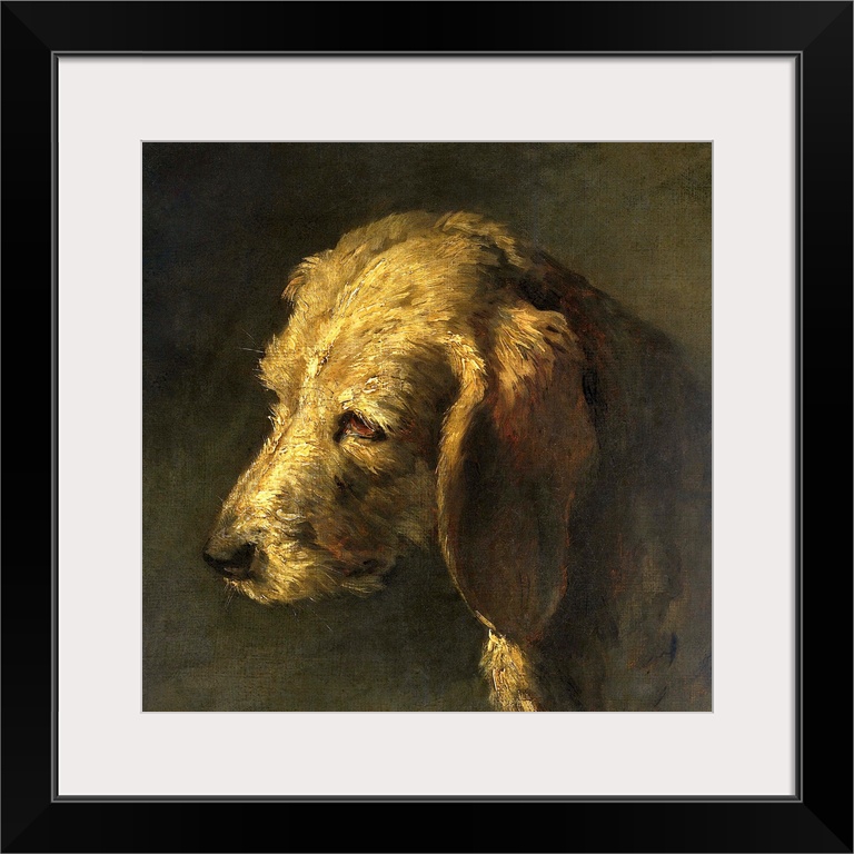 <p>Head of a Dog, by Nicolas Toussaint Charlet, c. 1820-45, French painting, oil on canvas.</p>