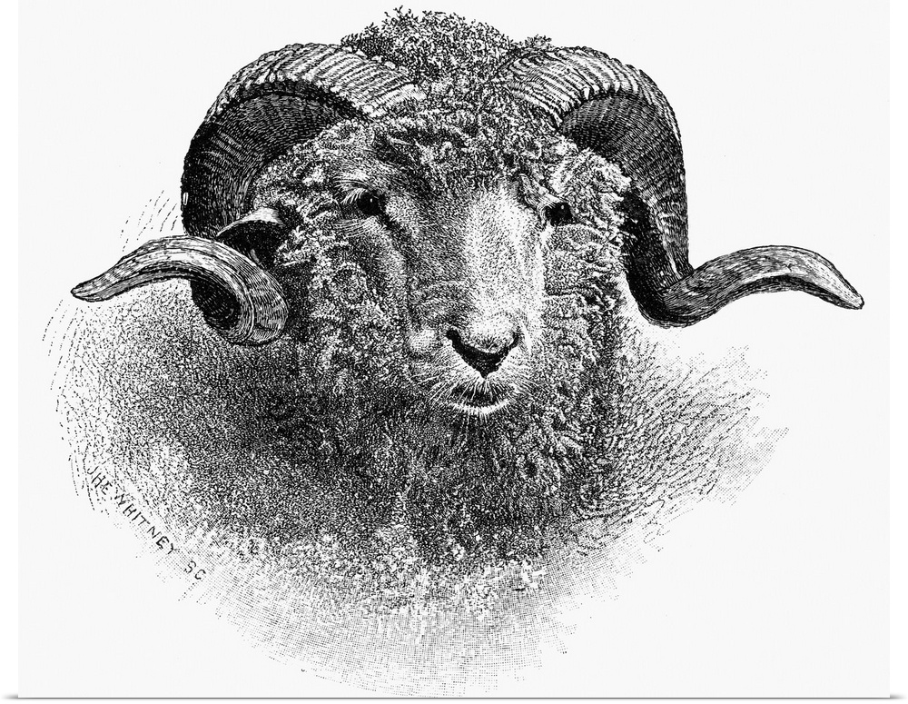 <p>Sheep, 19th Century. Head Of A Merino Ram. Wood Engraving, 19th Century.</p>
