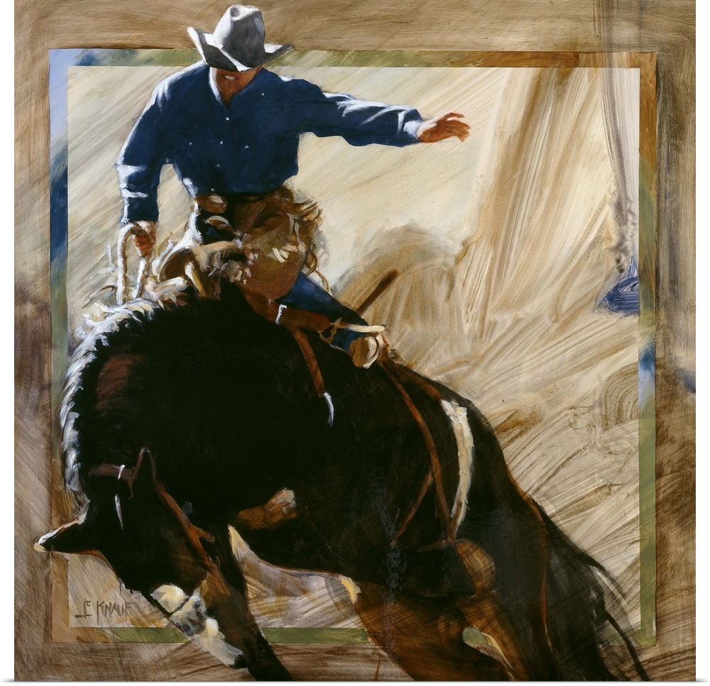 <p>Contemporary western theme painting of a cowboy riding a bucking bronco.</p>