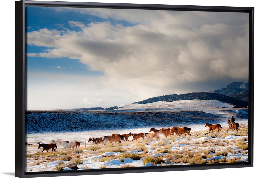 <p>Driving Horses across snowy plains</p>