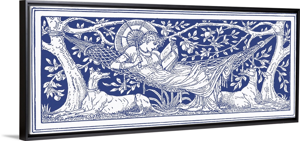 <p>Headpiece - Woman reclining in hammock with parasol. by Walter Crane: English artist of Arts and Crafts movement, 15 August 1845 - 14 March 1915. Easter Art Annual for 1898. The Work of Walter Crane with notes by the artist. London JS Virtue and Co. Limited.</p>