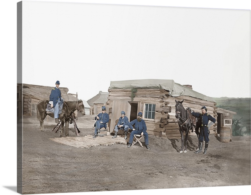 <p>Headquarters of F company, 11th Rhode Island Infantry, Minor's Hill, Virginia, during the American Civil War, 1861 -1865. This photo has been digitally restored and colorized.</p>