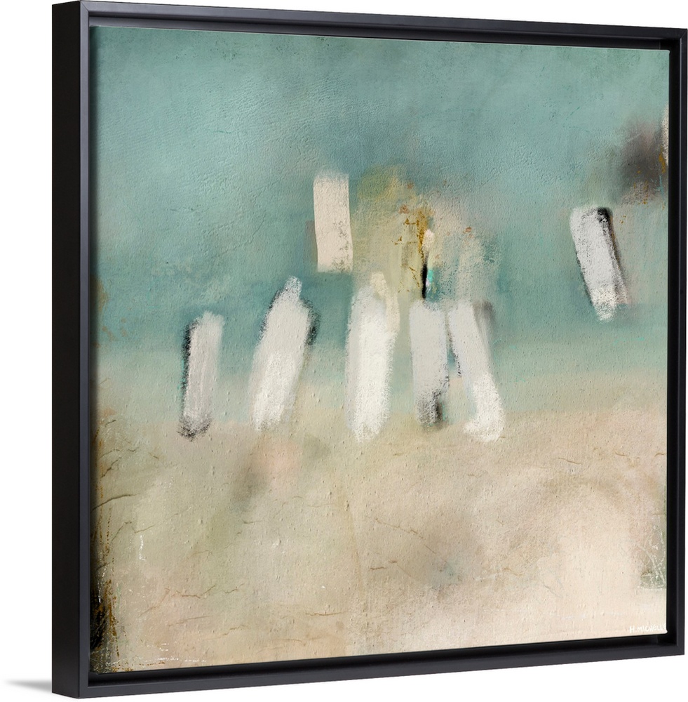 <p>A sophisticated abstract painting in a transitional style, featuring soft tones of aqua and sand that are reminiscent of a coastal landscape</p>