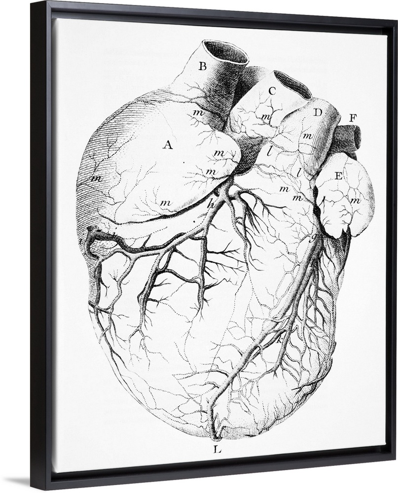 <p>Heart anatomy. 18th-century artwork showing the anatomy of the heart, including its coronary arteries. This artwork is from 'Traite de la structure du coeur, de son action, et de ses maladies' (1749) by the French physician and anatomist Jean-Baptiste Senac (1693-1770). Senac carried out important advances in studies of the heart, including writings on heart disorders. This copy of this artwork is from the of the Paris Faculty of Medicine.</p>