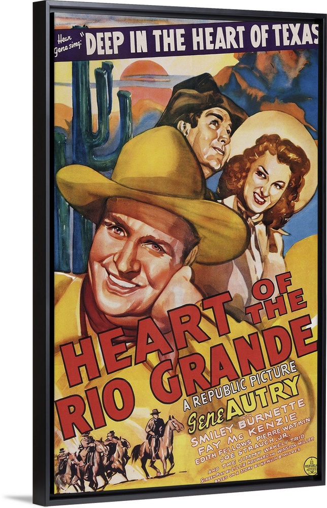 <p>HEART OF THE RIO GRANDE, US poster art, from left: Gene Autry, Smiley Burnette, Fay McKenzie, 1942</p>