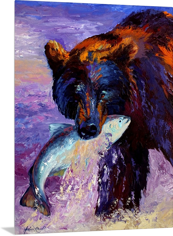 Art Contemporary Art Wildlife Purple Wall Art Marion Rose Wildlife Bear Brown Bear