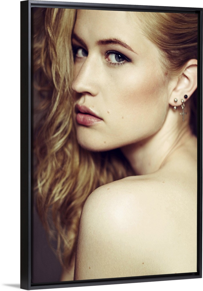 <p>Dramatic portrait of young woman looking over her shoulder</p>