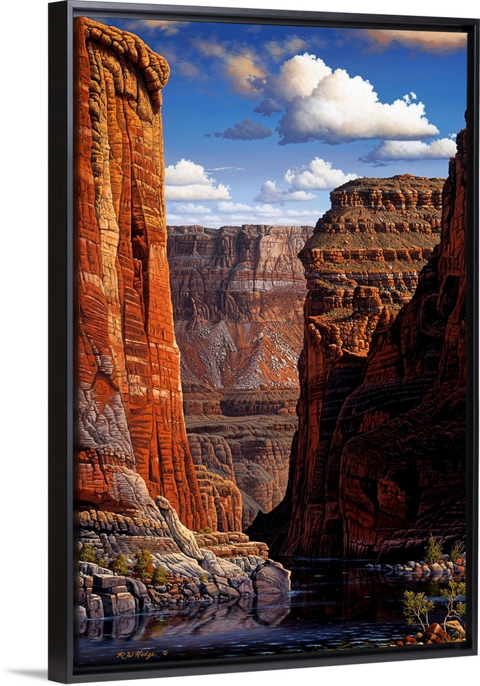 <p>Contemporary landscape painting of the Grand Canyon as seen from the river on the canyon floor.</p>