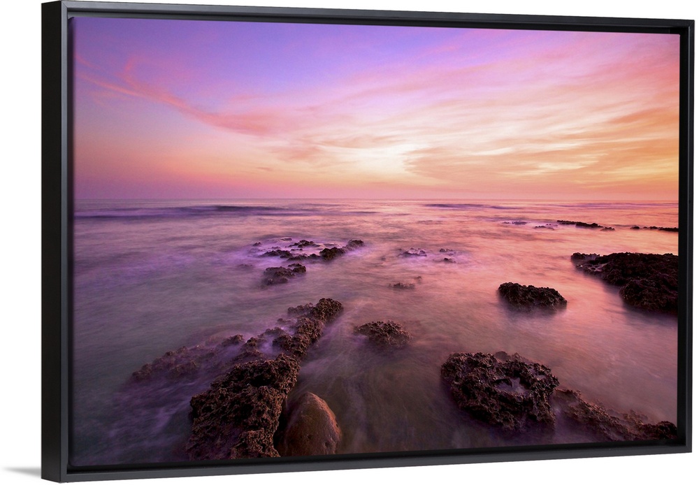 Elevate your home or office décor by adding a modern floating frame to your canvas art print. Finishing your gallery wrapped canvas with a floating frame enhances the beauty and detail of our giclée art prints. Handcrafted from solid wood, and available in multiple finish colors, there’s sure to be a frame to accent your canvas art print.