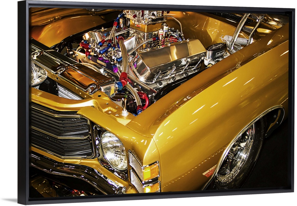 <p>Fine art photograph of a vintage car. The hood is popped and the engine is visible.</p>