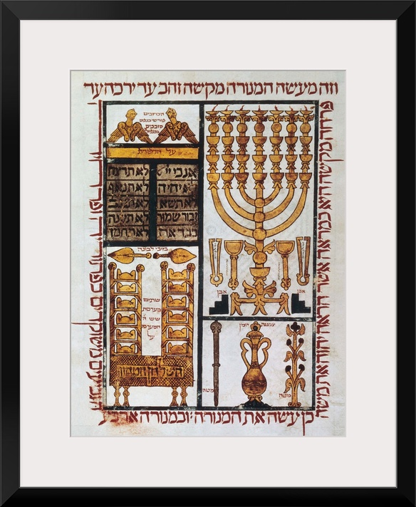 <p>Hebrew Bible (1299) located in Perpignan (Kingdom of Mallorca). Folio 13. Representation of the Ark of the Covenant open showing the Tablets of the Law, two cherubim and objects of the Temple of Jerusalem (Solomon's Temple). Miniature Painting. FRANCE. Paris. National Library. -</p>