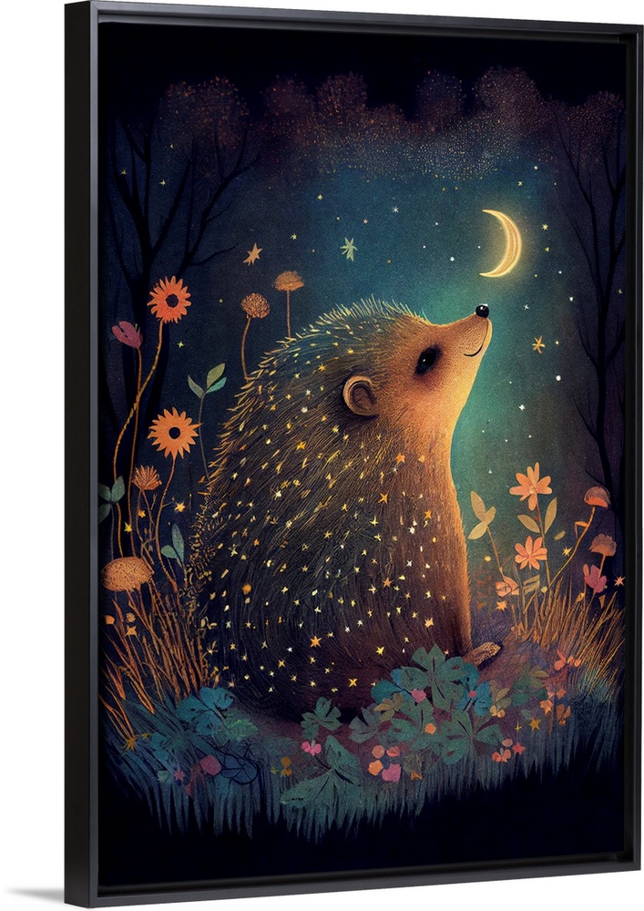 <p>This image by JK Stewart for Duirwaigh Studios is of a hedgehog in the moonlight.</p>