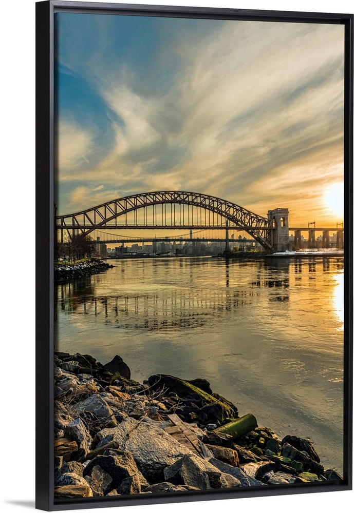 <p>Hell Gate And RFK Triborough Bridges At Sunset, Ralph Demarco Park; Queens, New York, United States Of America</p>
