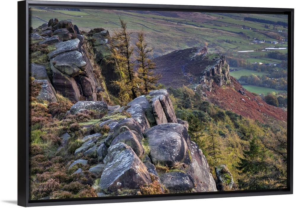 <p>Hen Cloud from The Roaches rock formation in autumn, near Leek, Peak District National Park, Staffordshire Moorlands, Staffordshire, England, United Kingdom, Europe</p>