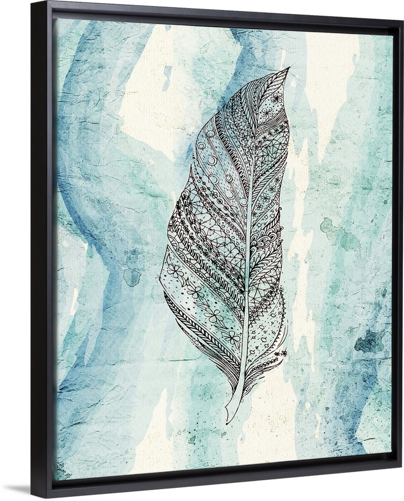 <p>A henna style feather placed on a blue scale watercolor background.</p>