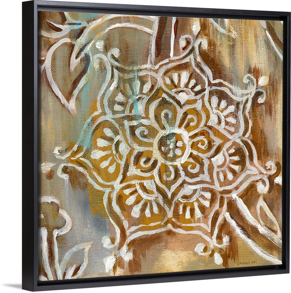 <p>Square painting of henna style art with neutral colors and a touch of light blue.</p>