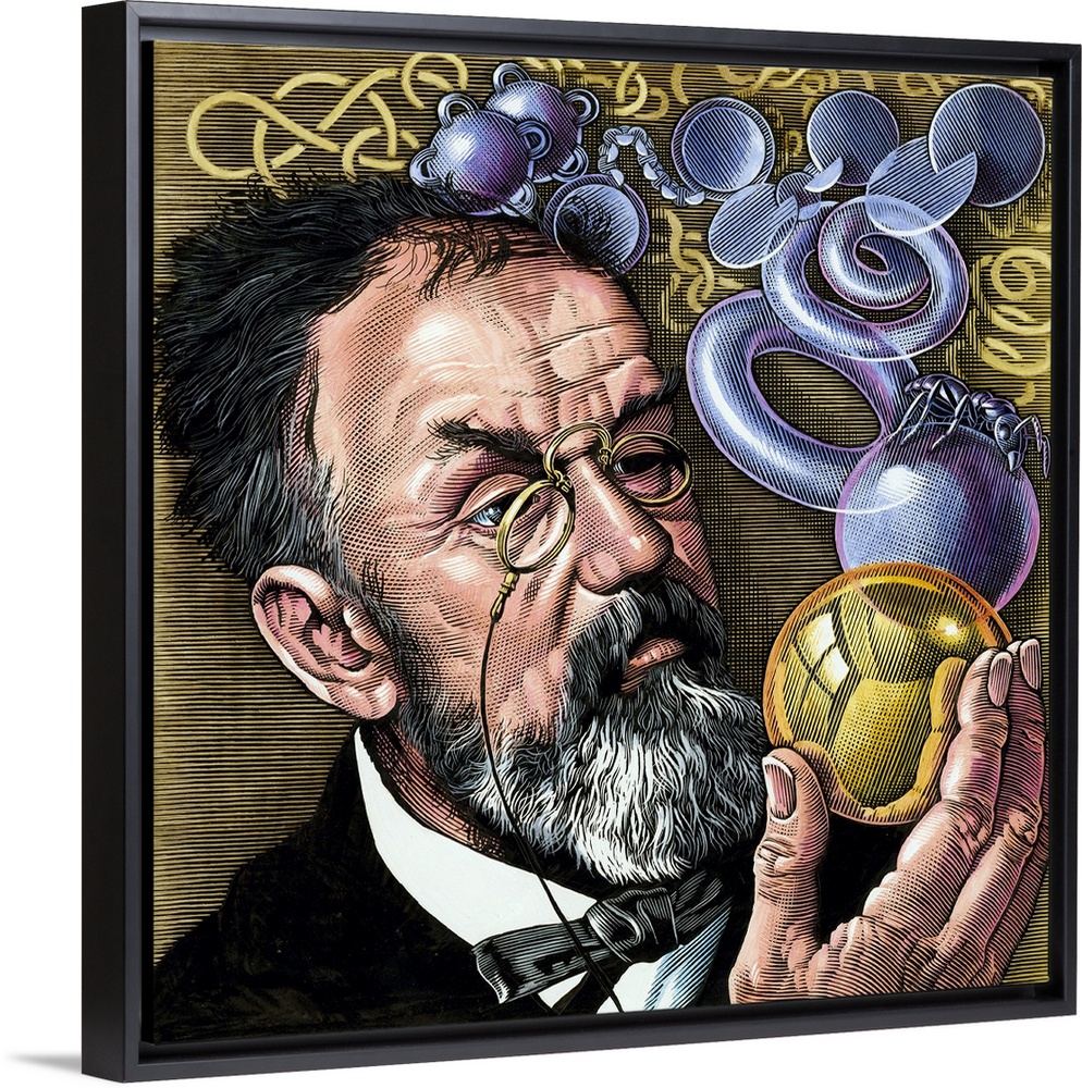 <p>Henri Poincare (1854-1912), French mathematician. Poincare is considered one of the greatest mathematicians of all time. He worked on celestial mechanics, topology, relativity and is considered the founder of chaos theory. The spheres, knots and surfaces around his head relate to his work. He also posed the Poincare Conjecture, in 1904, a problem in topology that remained unsolved for nearly a century, although a proof by Grigori Perelman in 2003 is generally considered correct.</p>