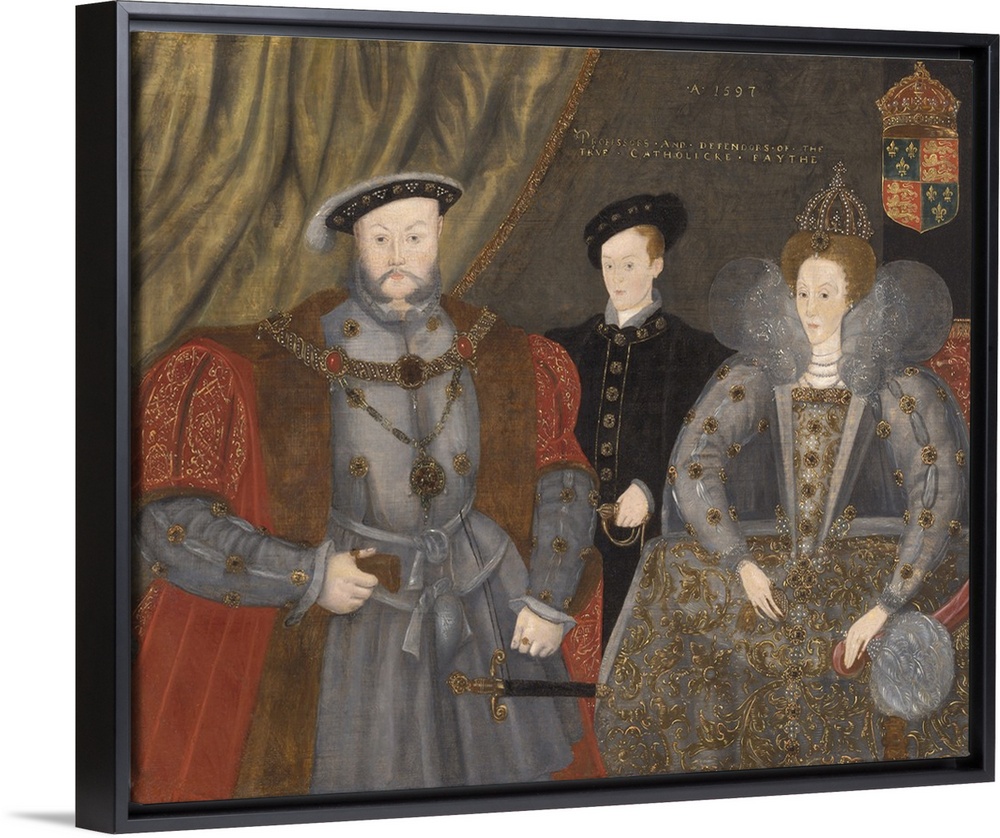 <p>Henry VIII, Elizabeth I, and Edward VI, 1597, oil on panel.</p>