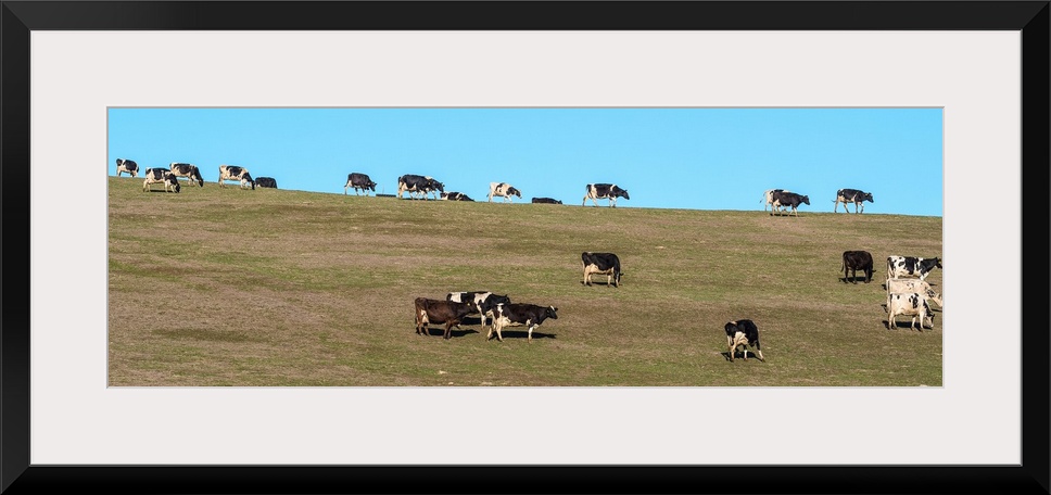 <p>Herd of cows grazing on a hill, point reyes national seashore, point reyes peninsula, marin county, california, USA.</p>