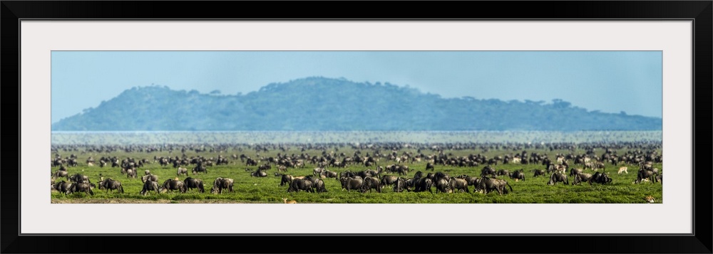 <p>Herd of white-bearded wildebeests (Connochaetes taurinus mearnsi), Ngorongoro Conservation Area, Tanzania, Africa</p>