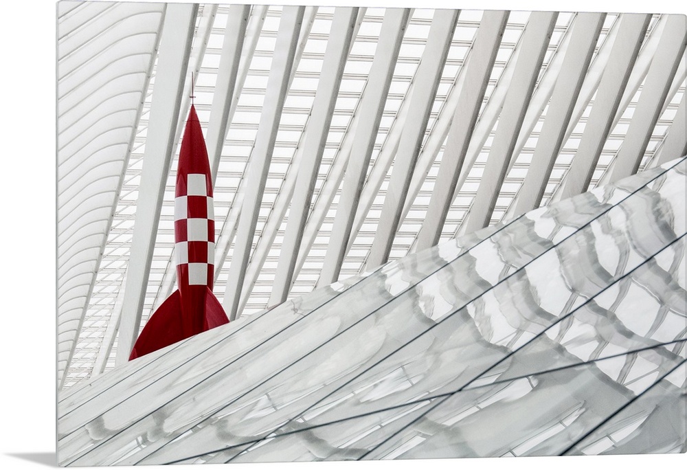 <p>A model of the rocket from the Tintin book series by Herge, seen over a glass roof, Liege, Belgium.</p>