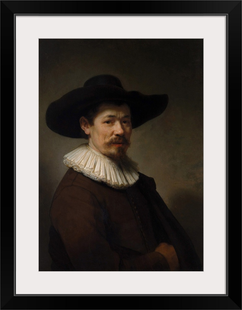 <p>This well preserved portrait of exceptional quality depicts the Amsterdam ebony worker Herman Doomer, who made fine cabinets and chests. His widow's will of 1654 leaves this painting and a companion portrait of her to their son Lambert (Rembrandt's pupil, about 1640-44), provided that he paint copies for his brothers and sisters. Especially remarkable in this work are the textures suggested in the head and linen collar.</p>