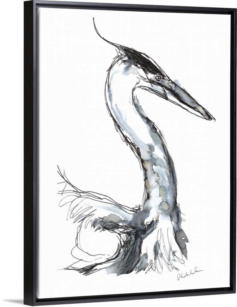 Art Contemporary Art Drawing Grey Wall Art Painting Kendra Shedenhelm Watercolor Wildlife Bird Heron and Egret