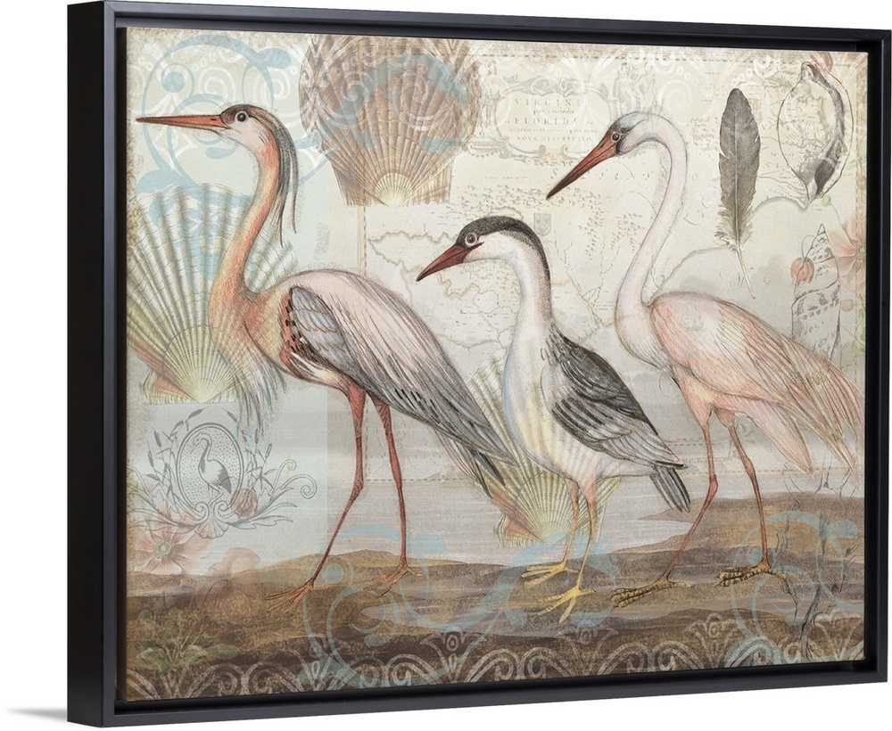 <p>Stunning herons are spotlighted on a beach-inspired backdrop.</p>