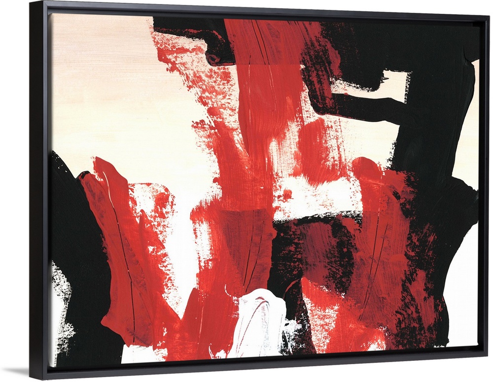 <p>Bold abstract painting in red, white, and black, with broad brushstrokes.</p>