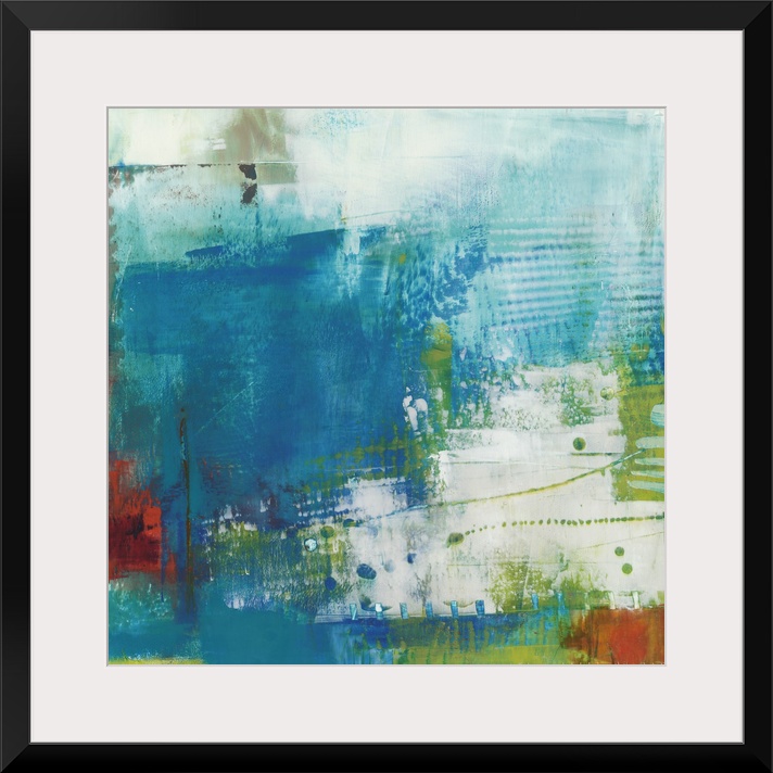 <p>Abstract contemporary painting in cool shades of deep blue and green.</p>
