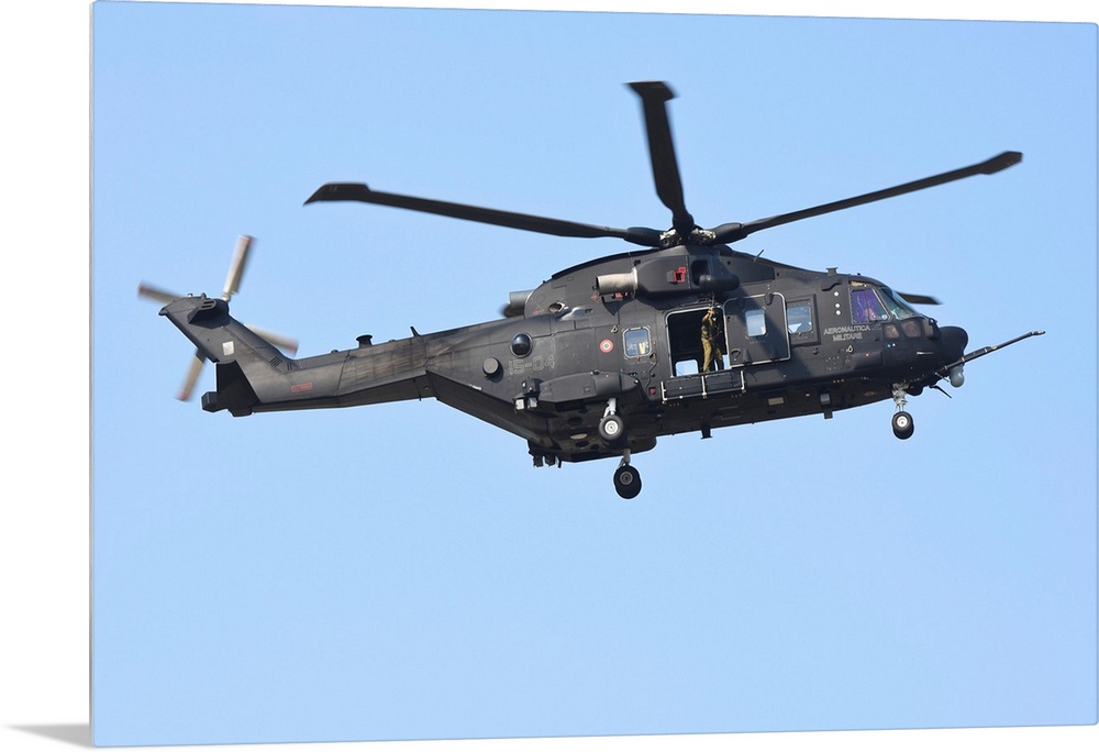 <p>HH-101A Caesar Combat-SAR helicopter of the Italian Air Force landing.</p>