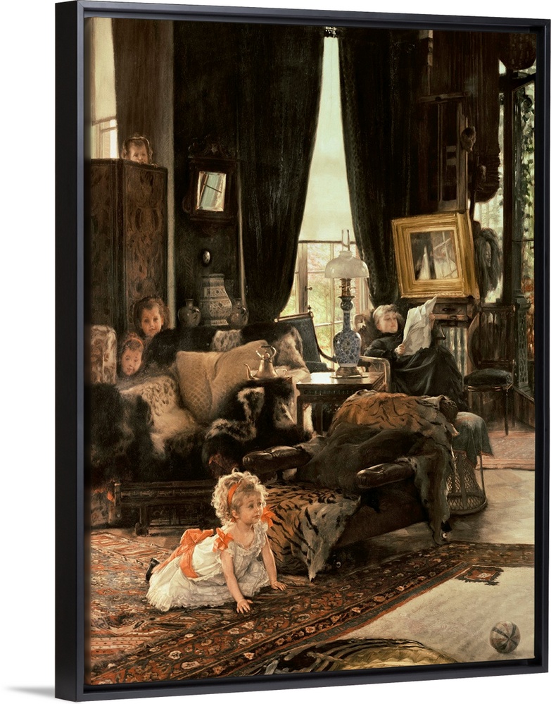 <p>BAL4975 Hide and Seek, c.1880-82 (panel) by Tissot, James Jacques Joseph (1836-1902); oil on panel; 75.9x60.3 cm; National Gallery of Art, Washington DC, USA; (add. info.: Tissot's house in St John's Wood); French, out of copyright</p>
