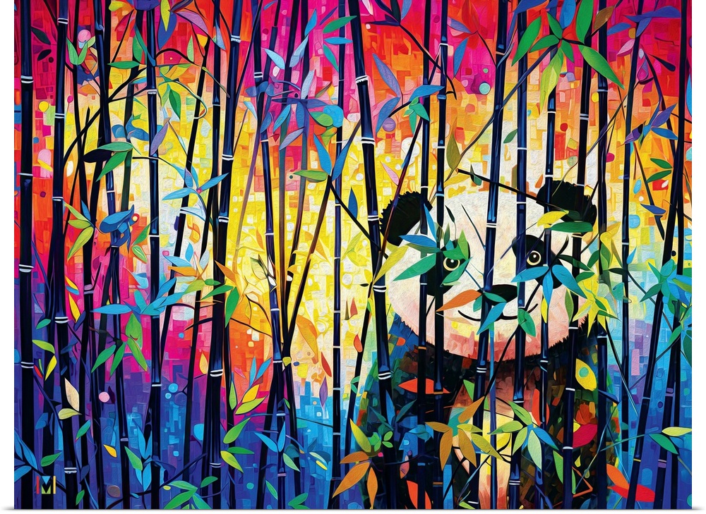 Art Children's Art Graphic Art Bamboo Multicolor Wall Art Michael David Ward Wildlife Panda