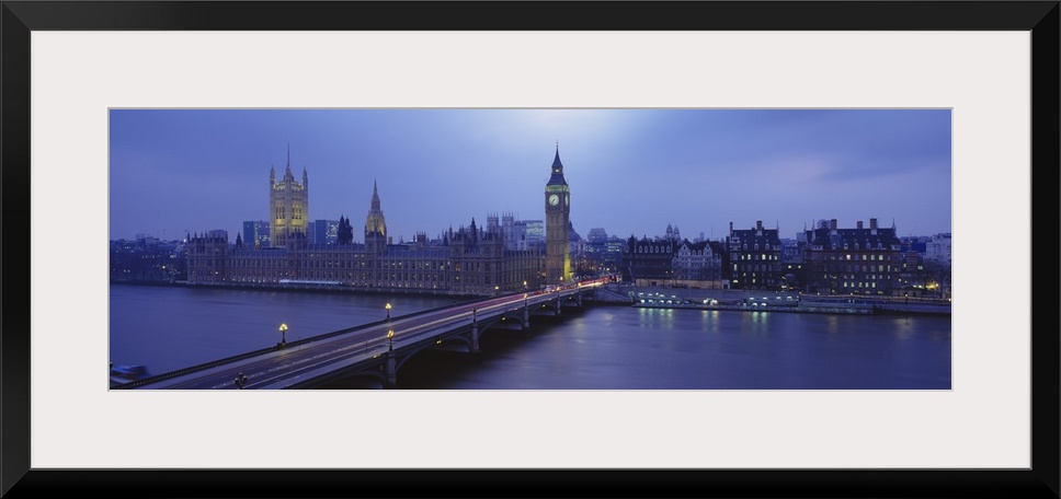 <p>London Skyline. High angle view of a bridge across the Thames, Westminster Bridge, Big Ben, Houses of parliament.</p>