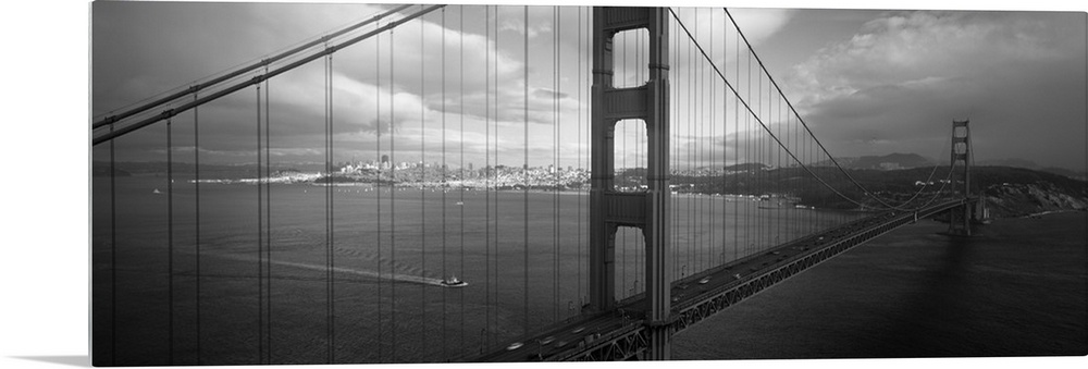 <p>Panoramic photo on canvas of the Golden Gate Bridge with the San Francisco cityscape in the distance.</p>