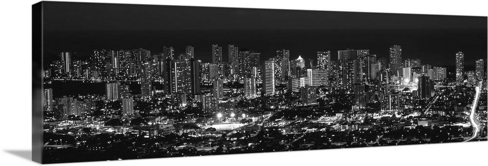 High angle view of a city lit up at night, Honolulu, Oahu, Honolulu County, Hawaii