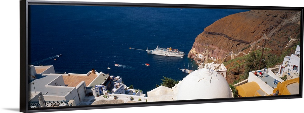 <p>High angle view of a city on a cliff, Santorini, Cyclades Islands, Greece</p>