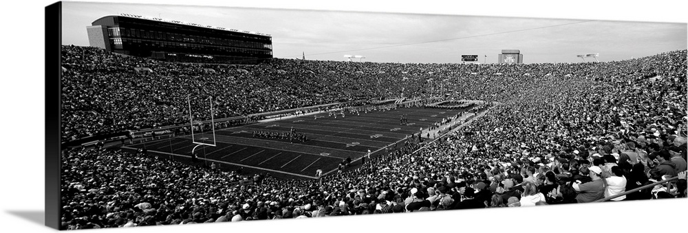 <p>High angle view of a football stadium full of spectators, Notre Dame Stadium, South Bend, Indiana, USA.</p>