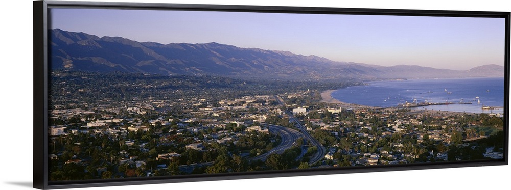 <p>Panoramic photo print of the Pacific Ocean meeting Santa Barbara and the rolling mountains in the distance.</p>