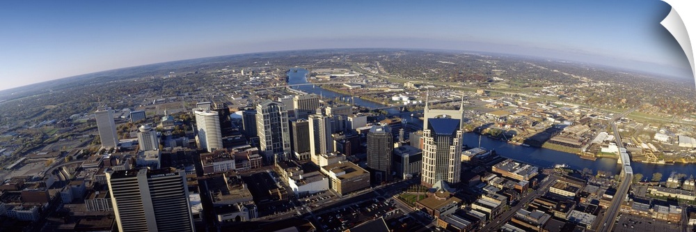 <p>An aerial photograph taken in panoramic view of the city of Nashville during the day.</p>