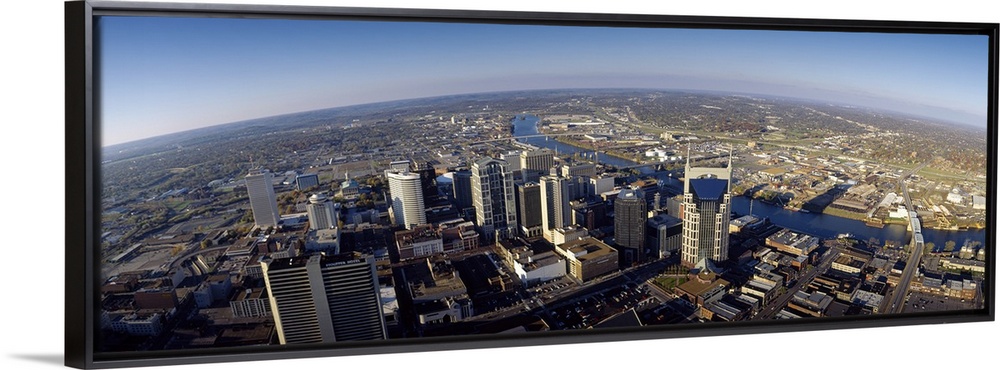 <p>An aerial photograph taken in panoramic view of the city of Nashville during the day.</p>