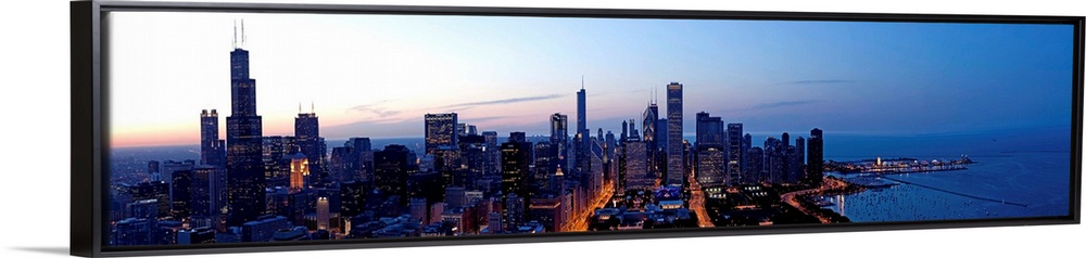 <p>High angle view of a city at dusk, Chicago, Cook County, Illinois, USA</p>