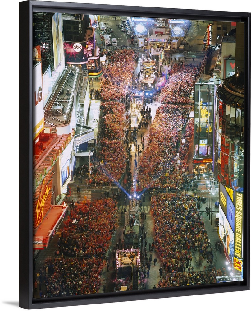 <p>Photograph of iconic city block in the ""Big Apple"" and night that is crowded with people waiting to bring in the new year.</p>