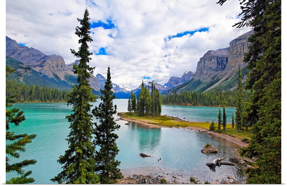 <p>High Angle View of Spirit Island, Maligne Lake, Jasper National Park, Alberta, Canada</p>
