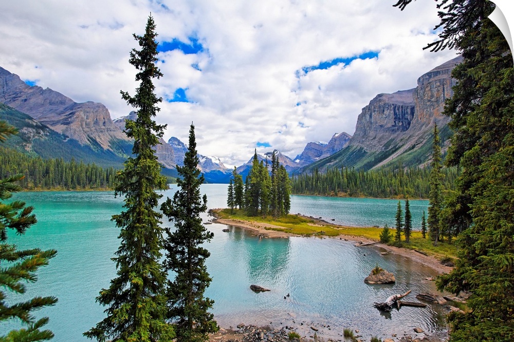 <p>High Angle View of Spirit Island, Maligne Lake, Jasper National Park, Alberta, Canada</p>