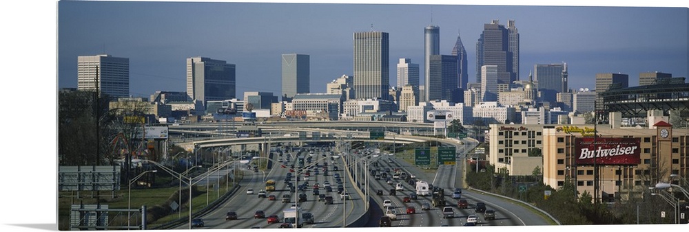<p>Wide angle view of the skyline and roads leading into the city of Atlanta.</p>