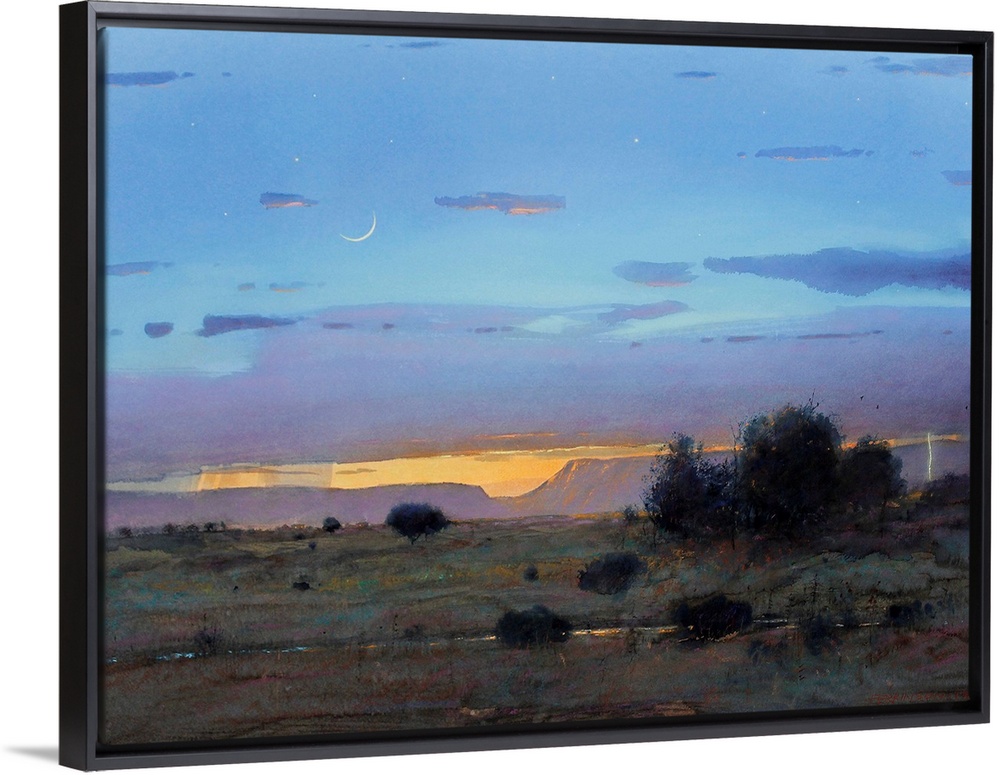 <p>A contemporary painting of a southwestern landscape under a blue stormy sky.</p>