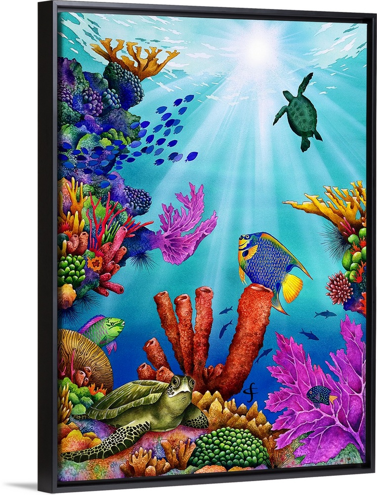 Art Blue Wall Art Contemporary Art Wildlife Painting Carolyn Steele Watercolor Wildlife Marine Life Fish Tropical Fish